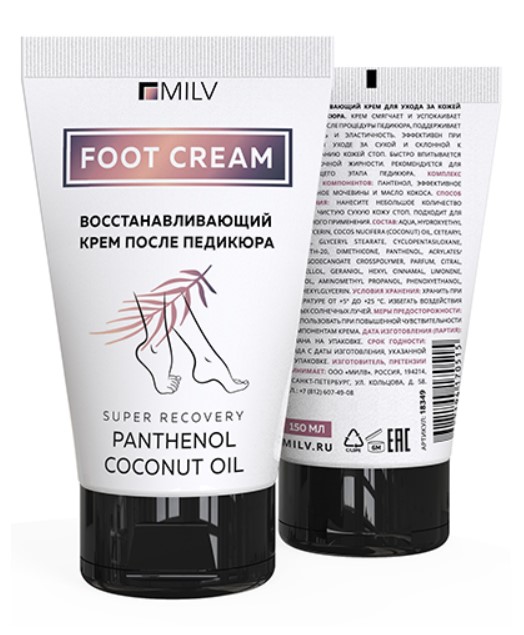 Восстанавливающий крем для ног после педикюра Milv, 150 мл