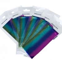 2. Поместить фольгу на гель-лаковое покрытие и тщательно проработать каждый участок поверхности втирающими движениями, чтобы металлизированный слой полностью перевелся.