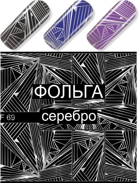 Водные наклейки для ногтей (слайдер-дизайн) F69 серебро