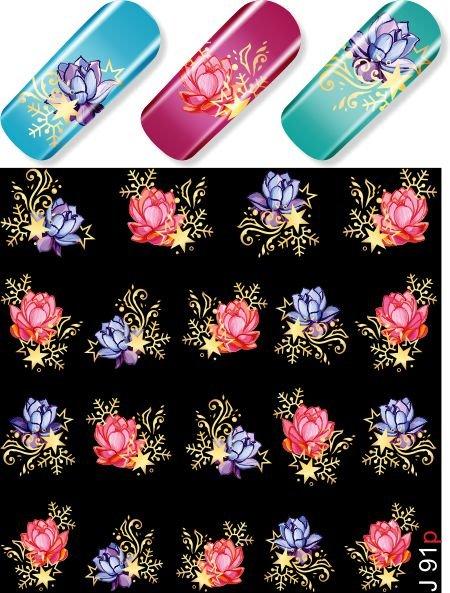 Водные наклейки для ногтей (слайдер-дизайн) J91 золото